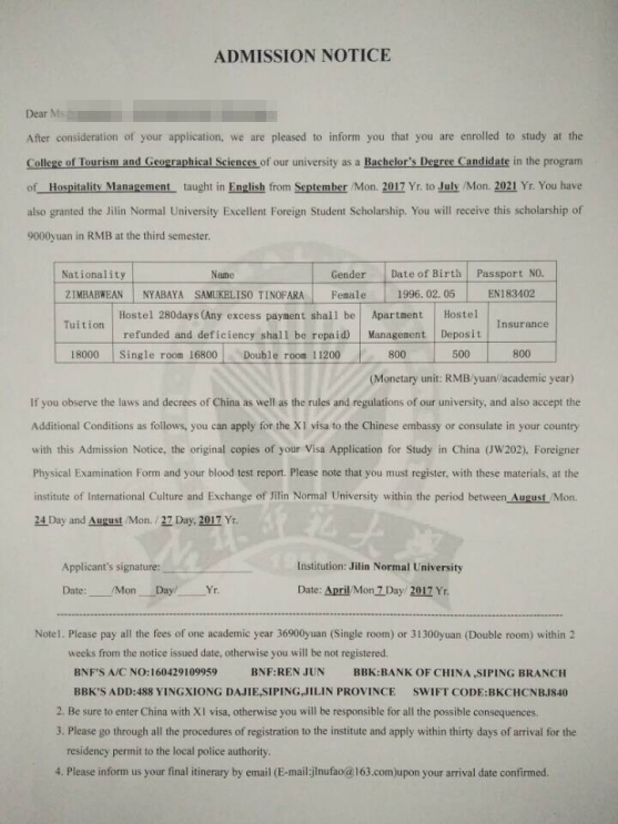 Hostel fee: 7380rmb/semester(single room) 4920rmb/semester(double room)
