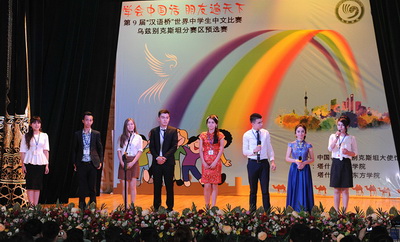 2016年5月28日,驻乌兹别克斯坦大使馆在乌内务部文化宫举办第九届“汉语桥”世界中学生中文比赛分赛区预选赛,驻乌兹别克斯坦大使孙立杰、乌59中校长沙姆希耶夫、塔什干轻工纺织学院附属二中校长法丽达、使馆外交官、乌中学汉语学生、中资企业和华侨华人代表等二百余人出席。