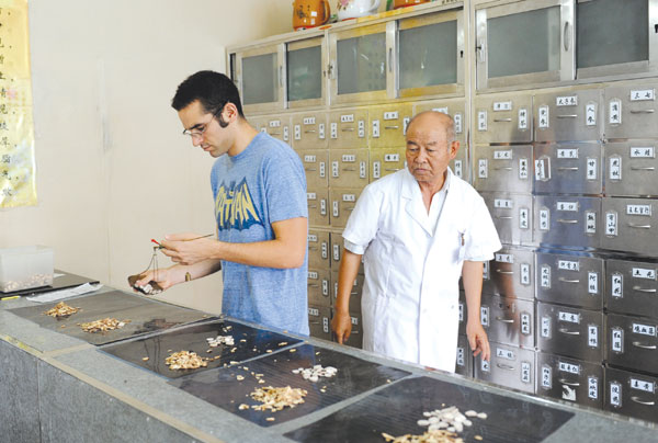 Last summer, Bryan Anker, a college student from the United States, studied traditional Chinese medicine under the discipline of senior TCM doctor Du Chunqing, who practices in Linfen, Shanxi province.