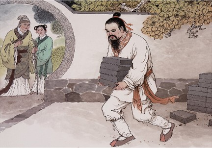 Tao Kan, courtesy name (a given name to be used later in life as a symbol of adulthood and respect) Shixing and formally Duke Huan of Changsha, was a renowned Jin Dynasty (265-420) general and governor. He was the great-grandfather of the Jin Dynasty poet Tao Yuanming. In an era known in the early stages for extravagance, civil wars, and great turmoil when the non-Han ethnicities overran the north of the country, Tao Kan was among the few people who established a good name for themselves in the court of Eastern Jin. Tao Kan's father was Tao Dan, a border commander of Wu during the Three Kingdoms period. He died when Tao Kan was young. Tao Kan was brought up by his mother, Zhan, a strong-willed woman who was determined for her son to succeed in life. Tao Kan carried bricks every day to encourage himself to be studious. Apart from ensuring he was educated, she used the money from weaving to enable him to establish a network of friends. Her efforts began to pay off when Tao Kan was recommended to become a county secretary by Zhou Fang, who also worked in the county office and became a famous general in the Jin Dynasty. Tao Kan's next opportunity came when Fan Kui, who was an official in the prefect's office of Fanyang in present-day Jiangxi Province, was passing by and visited them during a snow-bound winter. To provide a decent meal for their guest, Zhan cut off some of her hair to be sold and bought food and drink. She fed Fan's horses with straw from their mattress. Tao Kan chopped up parts of their house to be used as firewood. They finally managed to host Fan Kui 'properly', though it was clear the family was impoverished. At the end of the visit, Tao Kan escorted Fan Kui on his way. Touched by their efforts, Fan Kui asked Tao Kan if he wished to work in the prefect's office. Tao Kan replied that he did, but lacked an introduction. Fan Kui recommended him to Zhang Kui, prefect of Lu Jiang, and Tao Kan got his start in the civil service. Later, when he served as a minor official in charge of fish weirs (an obstruction placed in tidal waters or across a river designed to hinder the passage of fish) in Xunyang Commandery, he once sent a present of salted fish in an earthenware crock to his mother. Zhan sealed the fish back up and returned it to the messenger with a letter upbraiding Tao Kan: "While you are serving as a minor official, if I receive official property as a present, it not only does not make me happy, but even adds to my unhappiness!" This incident taught Tao Kan a valuable lesson and was the basis for his integrity and honesty.