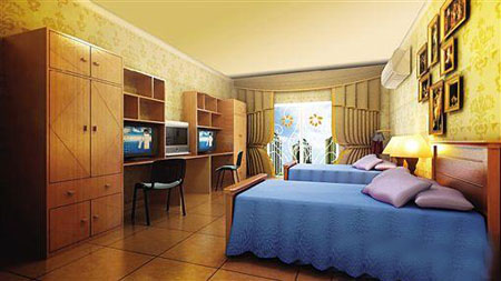The rooms costs twice as much as a bunk in the normal dorms at 2,400 RMB a year.