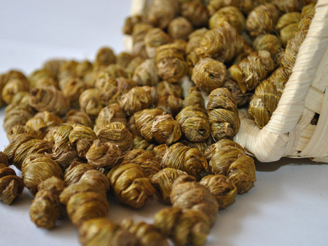 At traditional Chinese medicine pharmacies, a dried roll of shihu is available for sale. It is called fengdou, dried shihu with iron-colored peel. The dried product is commonly used to boil with chicken, duck, or lamb, for general health benefits.