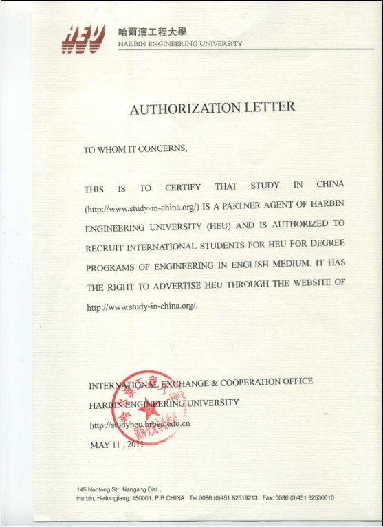 Authorization Letter of Harbin Engineering University