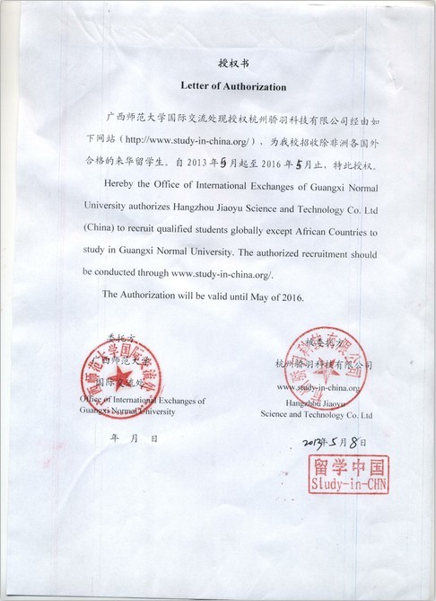 Authorization Letter of Guangxi Normal University