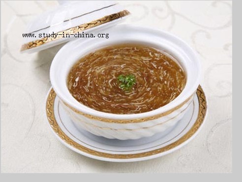 As soon as you are seated at your table, you will see a bottle of tea oil and a bottle of olive oil, besides two books in Chinese about the proper use of ingredients. You can choose the oil you prefer for your fried dishes, and read the books while waiting to be served. The appetizers come in the form of four old-style Beijing dim sums in the following flavors - yellow bean jelly, green bean and red bean pastry, sago juice, and fruits.