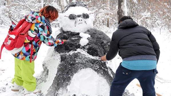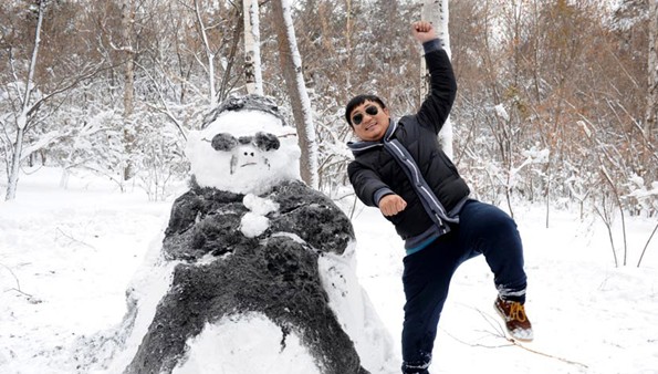 People make a snowman that looks like “Psy” in Changchun on Nov. 14 2012. The snow brought a lot of fun for residents in Changchun.