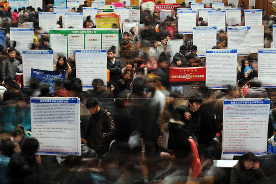 ImagesThousands of jobseekers flock to an employment fair in Hefei, east China’s Anhui province on February 25, 2012.