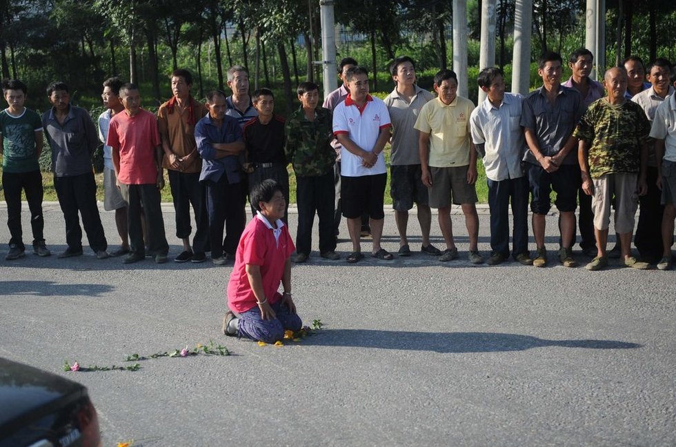 On July 29, in the Beijing district of Fangshan, escorted by police cars, accompanied by his family, Li Fanghong's hearse slowly pulled out of Yanhua hospital gate. Tens of thousands of local residents stood on both sides of the road, holding chrysanthemums, putting up banners, and waiting in a line which stretches for 56 kilometers to see him off. Li is a police inspector who lost his life while trying to rescue villagers trapped by floodwaters, at the Babaoshan Revolutionary Cemetery in Beijing, capital of China, July 29, 2012. Li, 45, was electrocuted by a live wire that had fallen into the water after rescuing 63 people in the village of Fenghuangting in the suburban Fangshan District on July 21, when the heaviest rain in six decades battered the capital city.