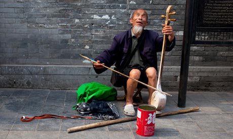 A blind man busking on Yandaixiejie Street – which mean Tobacco Pipe Lane. Photograph: Mike Kemp/In Pictures/Corbis