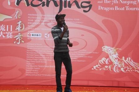 Our trip to Nanjing for a gathering of foreign students from Jiangsu province started early as we had to leave Jiangsu University at 6.30am. We all were still a bit sleepy in the bus but this faded away as soon as we reached Nanjing. Our first stop was the Nanjing Art College where we took some pictures and then we proceeded on foot to Shi Tou Cheng Park where the dragon boat races and gathering were going to be held. As soon as we reached the park, we could feel the excitement in the air. Despite it being still early, there were already quite a lot of people moving around. It was a great sight to see so many foreigners and Chinese people mingling together and interacting with each other.