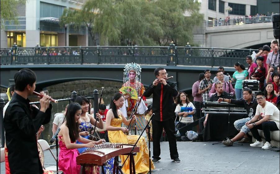 Performers take part in the Confucius Institute Day celebration in Providence, the United States, on Sept. 27, 2014. Bryant University and other four university's Confucius Institute of the United States celebrated the first Confucius Institute Day and the 10th anniversary of the founding of Confucius Institute, showcasing Chinese culture like paper-cutting, paper-folding, and chopsticks.