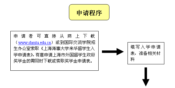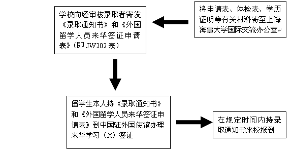 - * 请于规定时间内来我校报到,学费、住宿费请来校报到时一次付清。来校报到时请随带2寸报名照8张、体检证明原件、来华签证申请表(JW202表)、及上海海事大学外国留学生入学通知书。