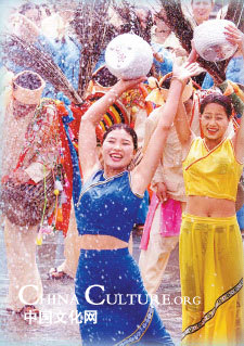Performers of the Dai ethnic group dance to celebrate their traditional Water-sprinkling Festival.