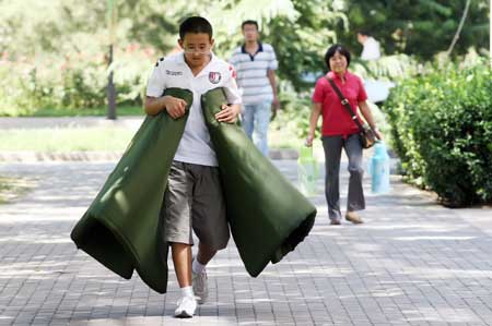 Zhang Xinyang, 13, carries mattresses to his dormitory in Beijing University of Technology in Beijing September 2, 2008. Zhang, recruited by the university as a graduate student in mathematics discipline this year, was enrolled when he was ten in Tianjin University of Technology and Education and finished the four-year course within three years.