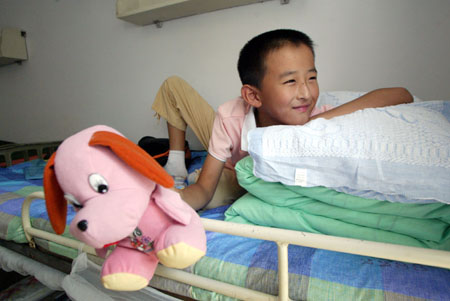 File photo shows ten-year-old Zhang Xinyang on his bed in the dormitory at Tianjin University of Technology and Education where he finished the four-year course within three years.