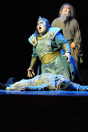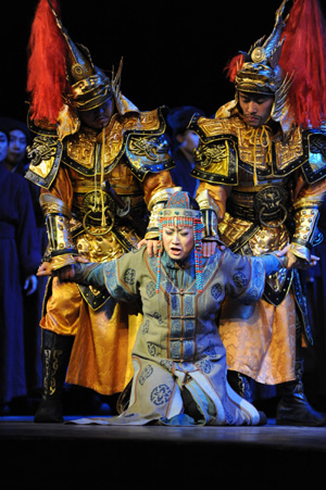 Chinese theatrical performers perfom the world famous opera Turandot in Cairo Opera House, downtown Cairo, Egypt, on Oct. 27, 2008. |